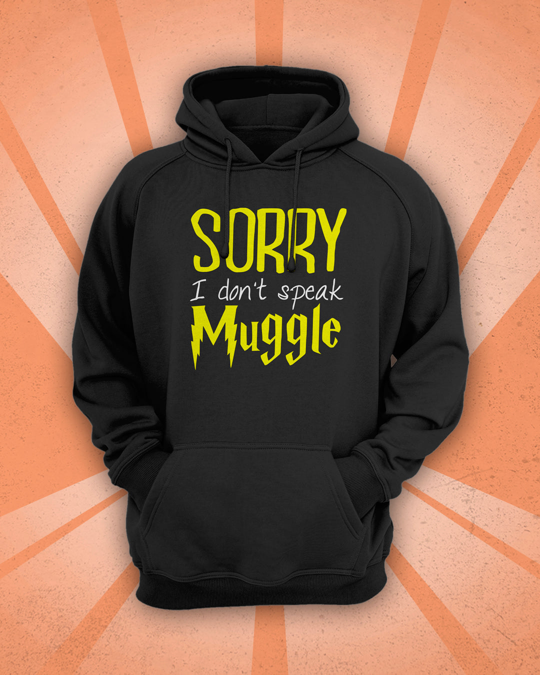 Para los verdaderos hechiceros de corazón, esta sudadera es un statement claro: "Sorry, I don't speak Muggle". Lleva contigo el encanto del mundo mágico con esta prenda ideal para fans que no temen mostrar su lado mágico con orgullo y estilo.